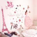 Aquire 130 cm Wall Stickers Eiffel Tower with Beautiful Bride Bonjour Paris PVC Vinyl for Bedroom Self Adhesive Sticker (Pack of 1)
