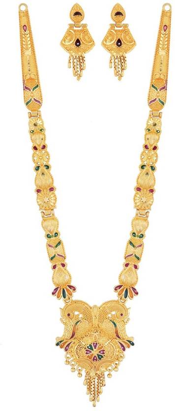 Sales Package Contains: 1 Set Long Necklace + 1 Pair Earring. Material: - Alloy, Gold Plating on Pendant and Chain. Product Care: - No Direct Perfume, Deo, Water, Spray on The Jewellery. First Wear Your Makeup, Perfume - Then Wear Your Jewellery. This will keep your Jewellery Shining for Years. Please Store in an Air-Tight Container. Do not Store in Velvet Boxes. Occasion: - Casual and Festivals, Party, Marriage, Any Function.