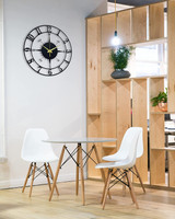 Made from high-quality metal, this wall clock ensures durability and a trendy look. The metal construction is stylish and is built to last. The powder-coated matte surface provides a sophisticated look while protecting the base, ensuring the clock complements various interior styles, from industrial chic to contemporary minimalism.