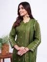 Flaunting a classic silhouette, with a Round-Neck collar, three-fourth sleeves, and ankle-length pant, the Aradhna Women’s Kurta, Pant, and Dupatta Set is sure to turn heads when you step out in it.