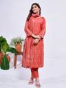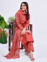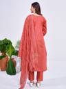 Flaunting a classic silhouette, with a Round-Neck collar, three-fourth sleeves, and ankle-length pant, the Aradhna Women’s Kurta, Pant, and Dupatta Set is sure to turn heads when you step out in it.