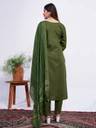Flaunting a classic silhouette, with a Round-Neck collar, three-fourth sleeves, and ankle-length pant, the Aradhna Women’s Kurta, Pant, and Dupatta Set is sure to turn heads when you step out in it.