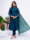 Flaunting a classic silhouette, with a Round-Neck collar, three-fourth sleeves, and ankle-length pant, the Aradhna Women’s Kurta, Pant, and Dupatta Set is sure to turn heads when you step out in it.