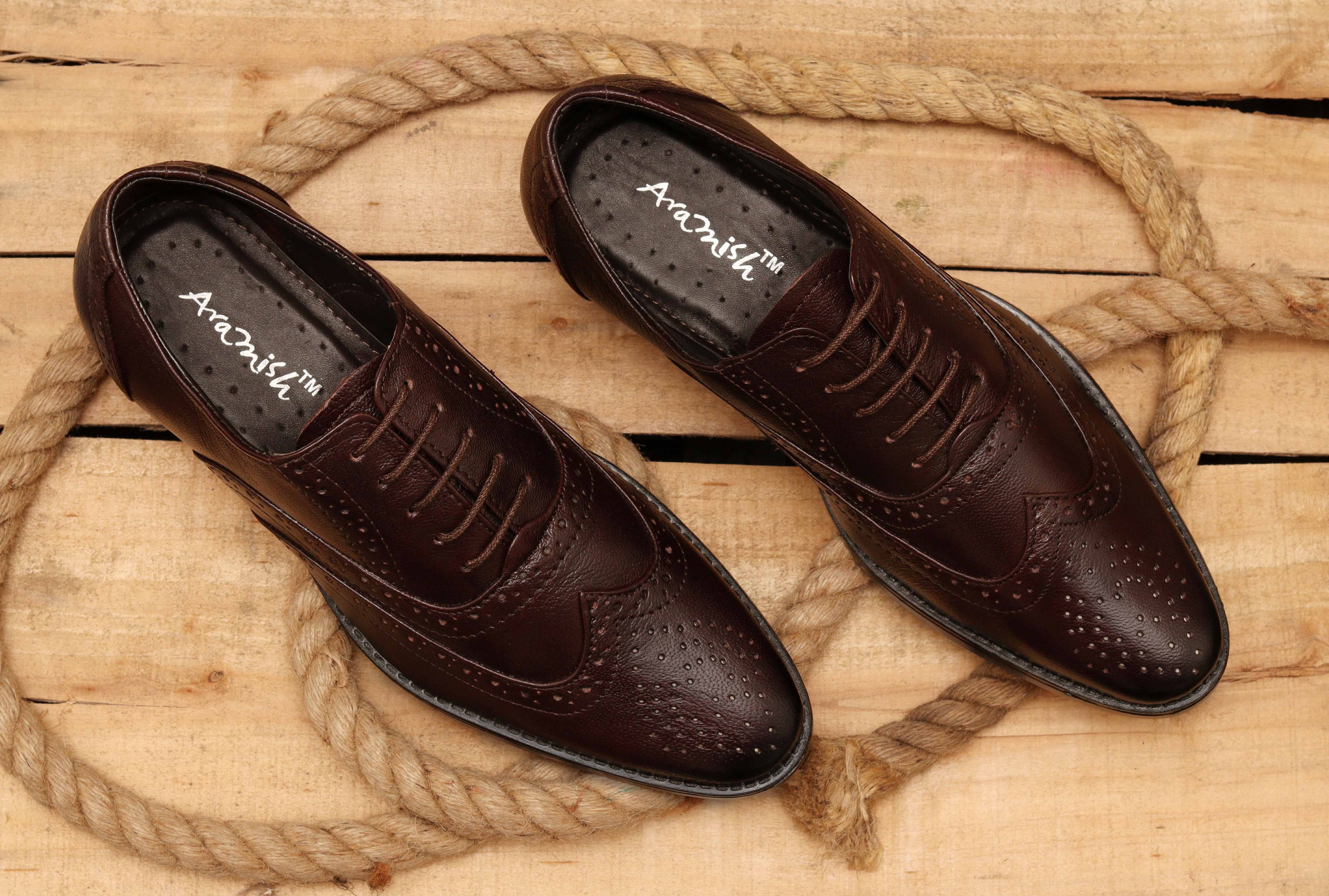 Elevate your style with this classy pair of Formal Brogue Shoe For Men from the house of ARAMISH Brand These Stylish latest Design Brogue Shoe for Men boasts Leather Upper with TPR Sole for durability These Men’s Formal Laceup Brogue Shoes are the perfect choice for all those who do not like to compromise on what they wear These Men’s Formal Shoe can be worn for Formal, Business Meetings & Office Purpose. Also best fit for Party , Everyday Dress Purpose ARAMISH Men’s Formal Footwear are made up of Premium Genuine Leather material which stays strong and durable - meaning the Formal Shoe will last much longer Soft Cushioned Insole and TPR Sole ensures cushioning to the feet removing heel strain ARAMISH endorses style that strikes a fine balance between the classic and the modern, the discreet and the bold with good taste being the only criterion for selection