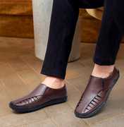 Step into timeless elegance and unparalleled comfort with the ARAMISH Genuine Leather Fisherman Sandals for Men. Meticulously crafted from high-quality genuine leather, these sandals epitomize sophistication and durability. The classic fisherman sandal design is complemented by an open construction, ensuring easy slip-on and a secure fit.