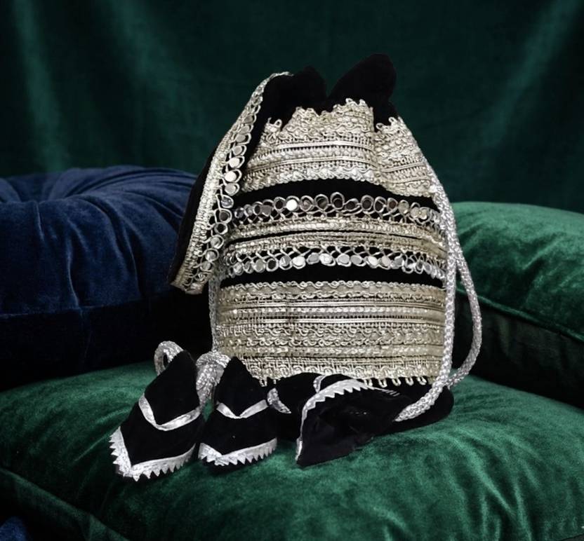 A Royal elegance to your festive look with this handcrafted velvet Potli bag from ARATRA. Made with premium soft velvet fabric and adorned with intricate silver lace handwork, this Potli reflects timeless ethnic charm. The detailed borders and mirror-style lace accents make it a perfect companion for weddings, festivals, and traditional celebrations.