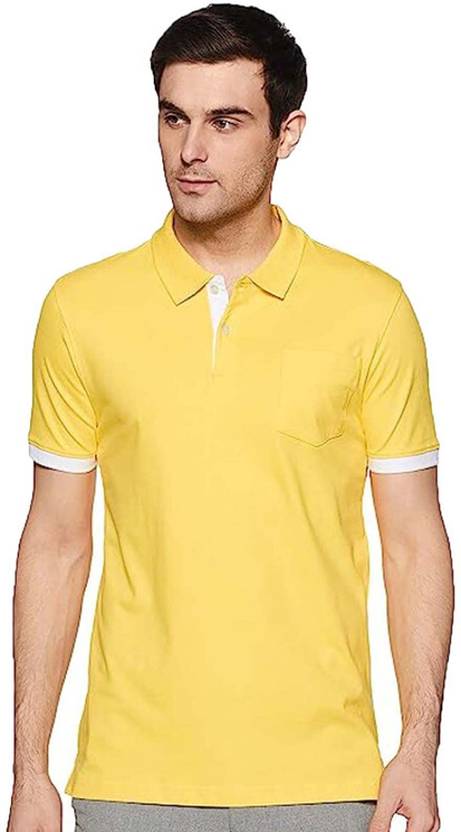 Arbind KumarĀ Men Solid Polo Neck Cotton Blend Yellow T-Shirt