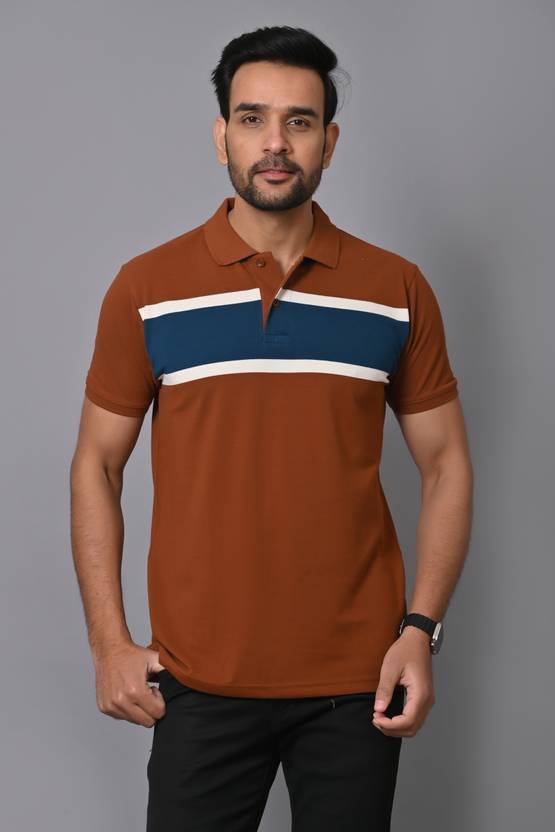 Arbour Men Colorblock Polo Neck Cotton Blend Brown T-Shirt