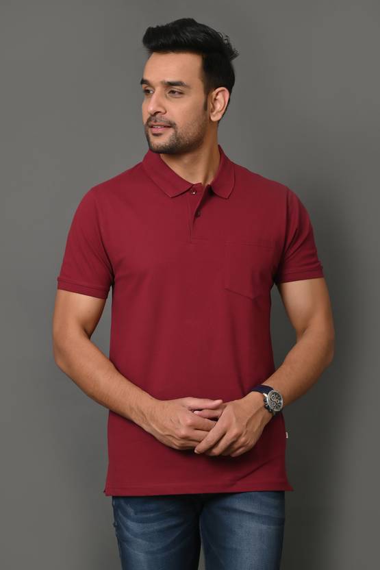 Arbour Men Solid Polo Neck Cotton Blend Maroon T-Shirt
