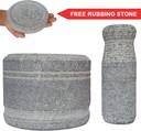 Name : Traditional Unique Stone Mortar and Pestle Set with Free Rubbing Stone / Imam Dasta / Kharal / Ohkli Musal / Spice Grinder / Idi Kallu / Idi Kal / Khalbatta / Ural / Rokali Banda / Kutni / Ural Kharad (5.5” Inch Dia)