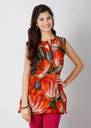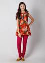 Vibrant color and floral print meet in this eye-catching and fiery orange kurta from Archisha that takes your casual ensemble to a cool graphic direction. Offset the heavy prints by teaming with brown corduroys and strappy heels when you go shopping.