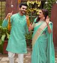 Introducing our latest collection of designer women saree and Men's kurta pyjama sets - a fusion of traditional elegance and contemporary style. Crafted to reflect the essence of togetherness, these exquisite ensembles celebrate love and grace. Embrace a timeless look that effortlessly merges two souls into one beautiful harmony. Whether you're attending a wedding, a festive celebration, or simply going out for dinner with friends, our couple wear will make you look and feel your best. Our men's collection come in a range of sizes, from M to XXL, ensuring that we have something for every body type. We also offer a range of colors to choose from, so you can find the perfect match for your personal style. We Give you Best Customer Service Till Your Product Delivered to You. Thank You.