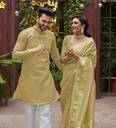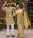 Introducing our latest collection of designer women saree and Men's kurta pyjama sets - a fusion of traditional elegance and contemporary style. Crafted to reflect the essence of togetherness, these exquisite ensembles celebrate love and grace. Embrace a timeless look that effortlessly merges two souls into one beautiful harmony. Whether you're attending a wedding, a festive celebration, or simply going out for dinner with friends, our couple wear will make you look and feel your best. Our men's collection come in a range of sizes, from M to XXL, ensuring that we have something for every body type. We also offer a range of colors to choose from, so you can find the perfect match for your personal style. We Give you Best Customer Service Till Your Product Delivered to You. Thank You.