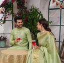 Introducing our latest collection of designer women saree and Men's kurta pyjama sets - a fusion of traditional elegance and contemporary style. Crafted to reflect the essence of togetherness, these exquisite ensembles celebrate love and grace. Embrace a timeless look that effortlessly merges two souls into one beautiful harmony. Whether you're attending a wedding, a festive celebration, or simply going out for dinner with friends, our couple wear will make you look and feel your best. Our men's collection come in a range of sizes, from M to XXL, ensuring that we have something for every body type. We also offer a range of colors to choose from, so you can find the perfect match for your personal style. We Give you Best Customer Service Till Your Product Delivered to You. Thank You.