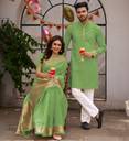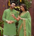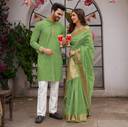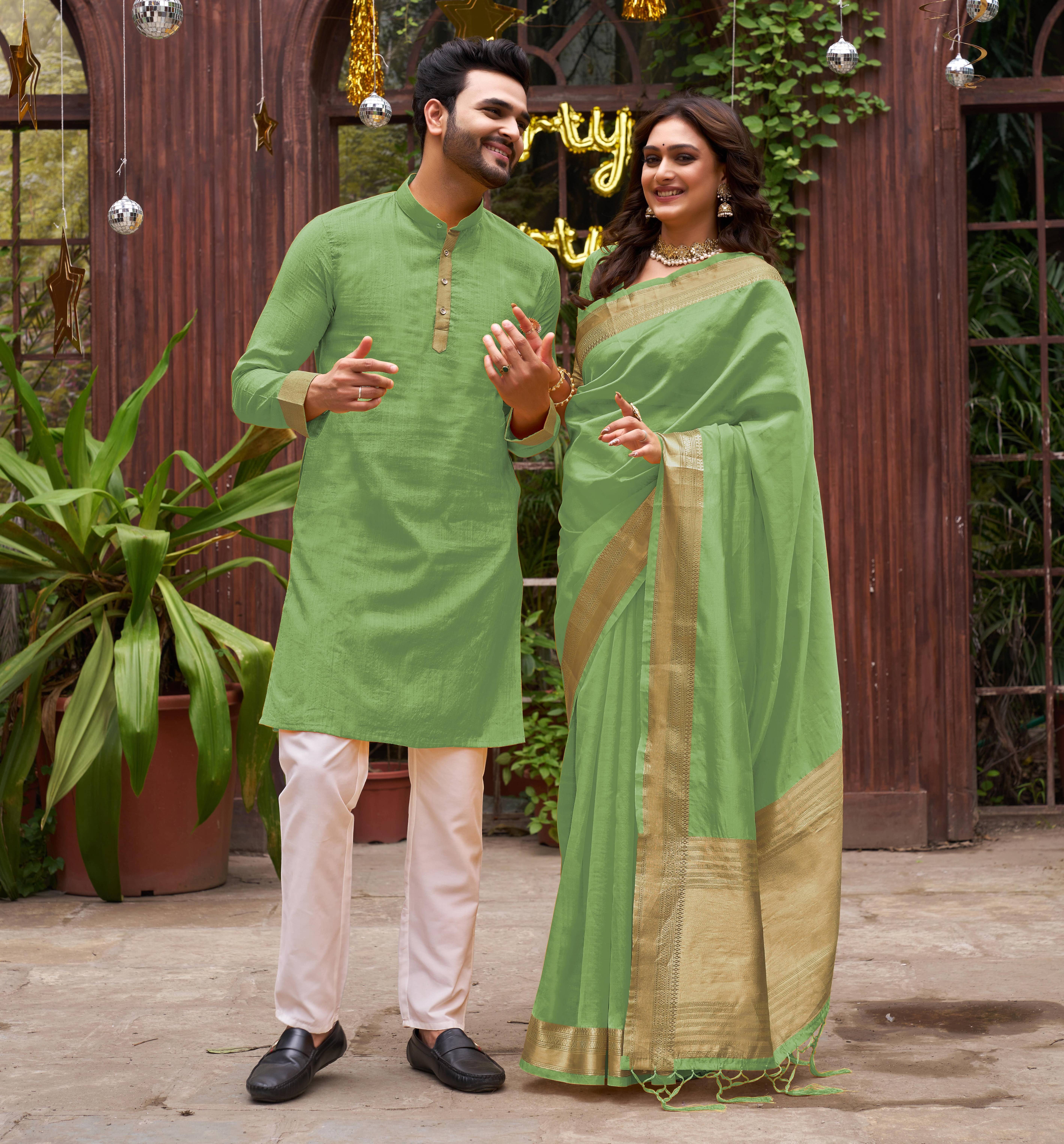 Introducing our latest collection of designer women saree and Men's kurta pyjama sets - a fusion of traditional elegance and contemporary style. Crafted to reflect the essence of togetherness, these exquisite ensembles celebrate love and grace. Embrace a timeless look that effortlessly merges two souls into one beautiful harmony. Whether you're attending a wedding, a festive celebration, or simply going out for dinner with friends, our couple wear will make you look and feel your best. Our men's collection come in a range of sizes, from M to XXL, ensuring that we have something for every body type. We also offer a range of colors to choose from, so you can find the perfect match for your personal style. We Give you Best Customer Service Till Your Product Delivered to You. Thank You.