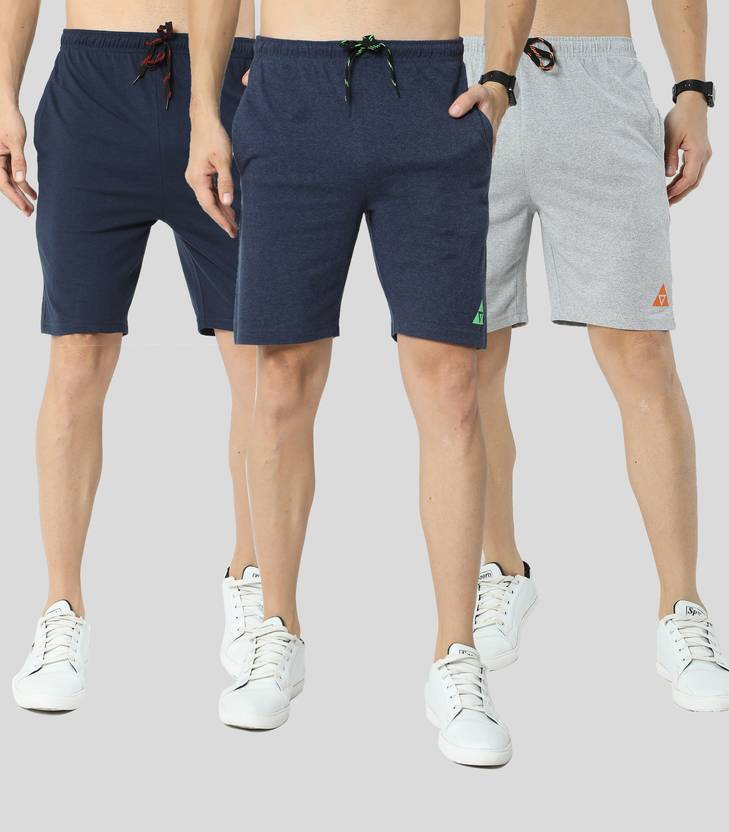 ARDEUR Pack of 3 Solid Men Blue, Dark Blue, Grey Casual Shorts