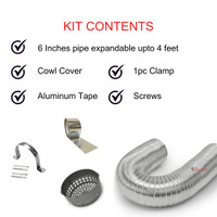 Including up to 1.2192 m of flexible duct pipe, a clamp with screw, up to 2 m of aluminium foil tape, and a 15.24 cm cowl cover, this ducting hose pipe kit provides everything needed for a neat and reliable chimney installation. This comprehensive kit design can simplify the setup process, potentially reducing installation time and effort.