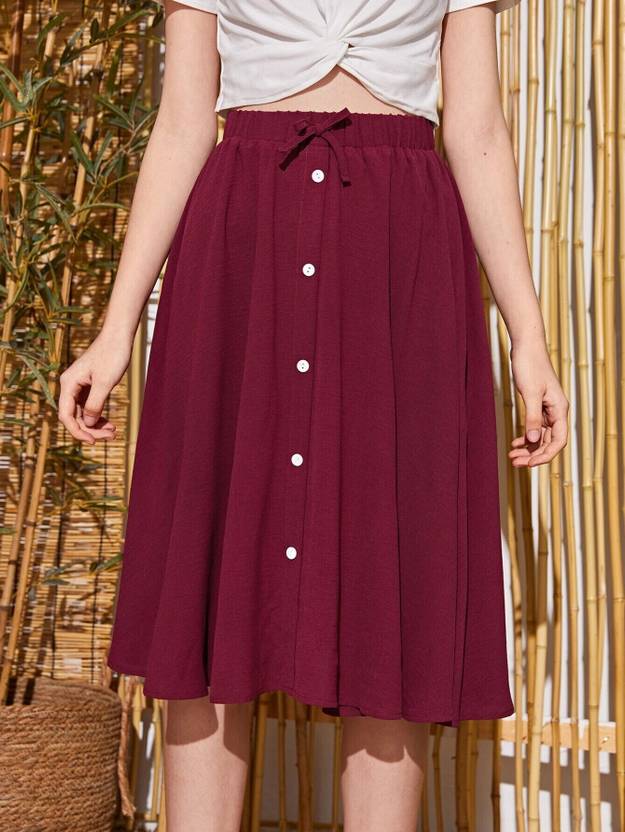 Latest designer cotton Lycra blend Maroon skirt with button on it and slit to make it attractive and gorgeous. Women's Or girl's can wear it as casual wear, party wear, at dinner, dating etc.. You can wear with matching top, sandals & with matching jewelry. It gives you stunning looks.