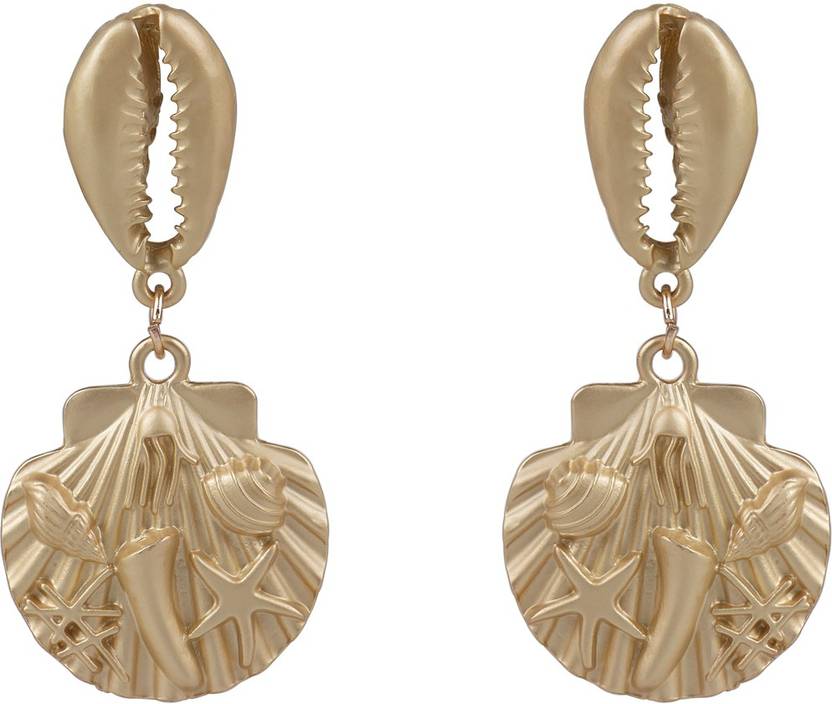 Textured Beach Design Sea Shell Earrings for Women [AER096] Brass Drops & Danglers