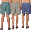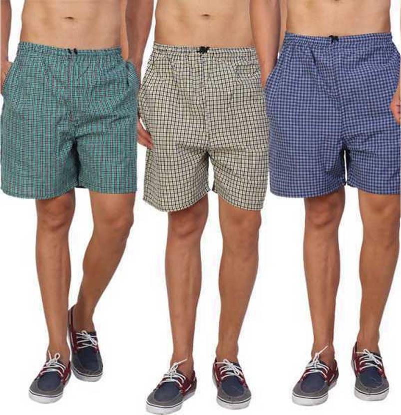 Multi color Cotton Boxers. Superior combed cotton fabric for softness and luster.Convenient side pocket and longer leg styling. Can be worn at home or as sleepwear with a superior elastic
