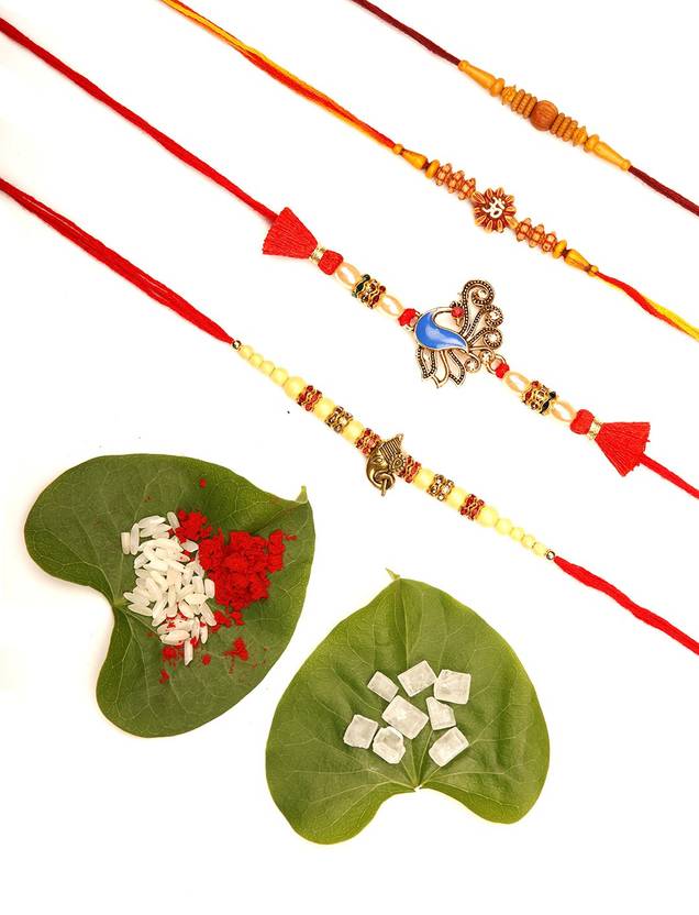 Ariana Designer RAKHI-IN-C16- PK-4 Assorted Rakhi, Chawal Roli Pack Set (4 Rakhi, 1 Roli chawal mishri)