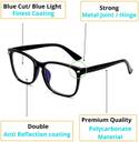 Bluecut Lens Technology :- Featuring Blu Lens technology which helps in protecting your eyes by blocking the harmful blue light emitted by digital devices like your smartphone and computer as well as filter the UV rays from the sun | Ideal for Men & Women. These Blue Cut lenses are Anti Glare and Crack Resistant, offering UV400 protection and are hydrophobic & dust repellent.