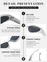 The wrap around sunglasses are made of high-quality skin-friendly material, light weight, the flexible wrapping frame can perfectly fit the contour of the face, you can wear it for long time without fatigue, also can save you from the embarrassing wear marks when you take them off.