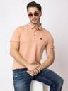 Men Solid Polo Neck Cotton Blend Orange T-Shirt