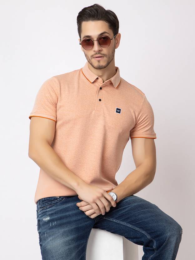 ARIIX Solid Men Polo Neck Orange T-Shirt
