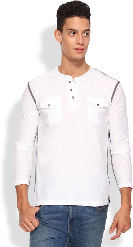 This Stylish Henley T shirt is made out of 100% cotton SLUB fabric. You will fall in love with the feel of SLUB fabric as it is more comfortable, light weighted and has better drape. The raw fabric inserted along side sleeve and on shoulder makes you stand out. Team it up with a pair of denim or chinos to flaunt your casual look.