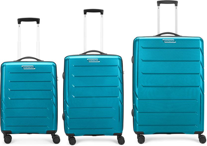 ARISTOCRAT CHROMA 8W(N) STR. Set of 3 (Small 55cm | Medium 65cm | Large 75cm) 360 TEAL BLU Cabin & Check-in Set 8 Wheels - 30 Inch