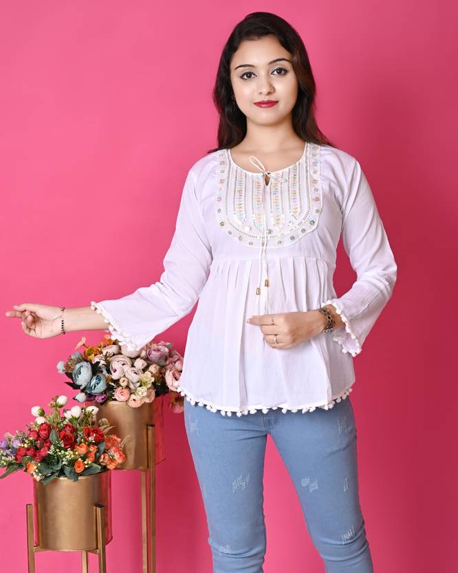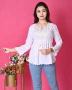 ARIYAN DRESSES Girls Party Cotton Blend A-line Top (White, Pack of 1)