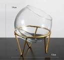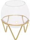 Elegant round glass bowl with a stylish golden metal stand, perfect for use as a tabletop planter, decorative vase, or modern centerpiece. Its transparent design highlights plants, flowers, or decorative fillers, while the sturdy golden stand adds a touch of luxury to home and office décor.