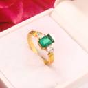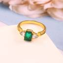 Add a touch of royal elegance to your look with this stunning green stone gold-plated ring. The rectangular emerald-style stone, flanked by sparkling white crystals, gives it a classy and timeless charm. Designed for modern women, this ring enhances both ethnic and western outfits. Perfect for parties, weddings, or gifting to someone special.