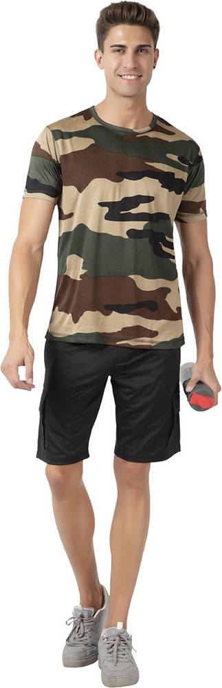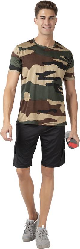 Men's sweat absorbing extra stretch, drifit track suit with 1 t-shirt and 1 shorts. Suitable for all occasions : gym, sports, casual and lounge wear. Military Camouflage print