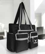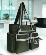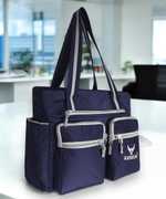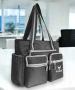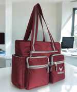Premium quality waterproof polyester material, Light weight fabric and nice eye catchy tote bag, 2 Big compartments and 9 pockets, Highly durable imported zippers & sliders, Both side pockets for water bottle