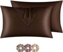 ARMOXA Satin Pillows Cover (45 cm*72 cm, Pack of 2, Brown)