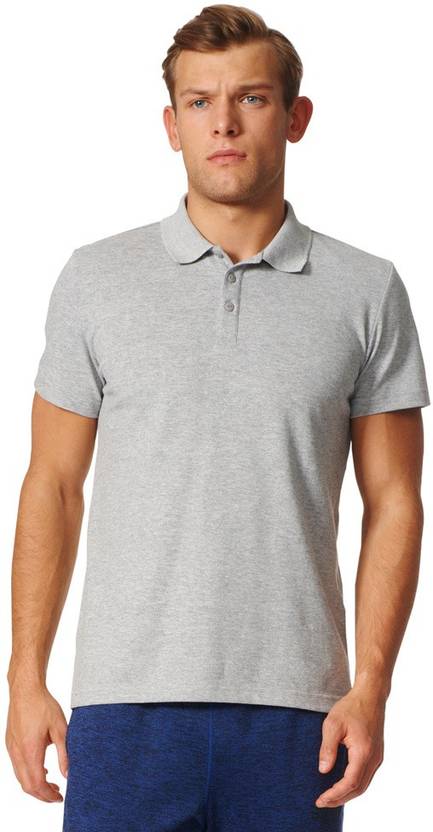 Men Solid Polo Neck Cotton Blend Grey T-Shirt
