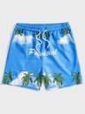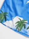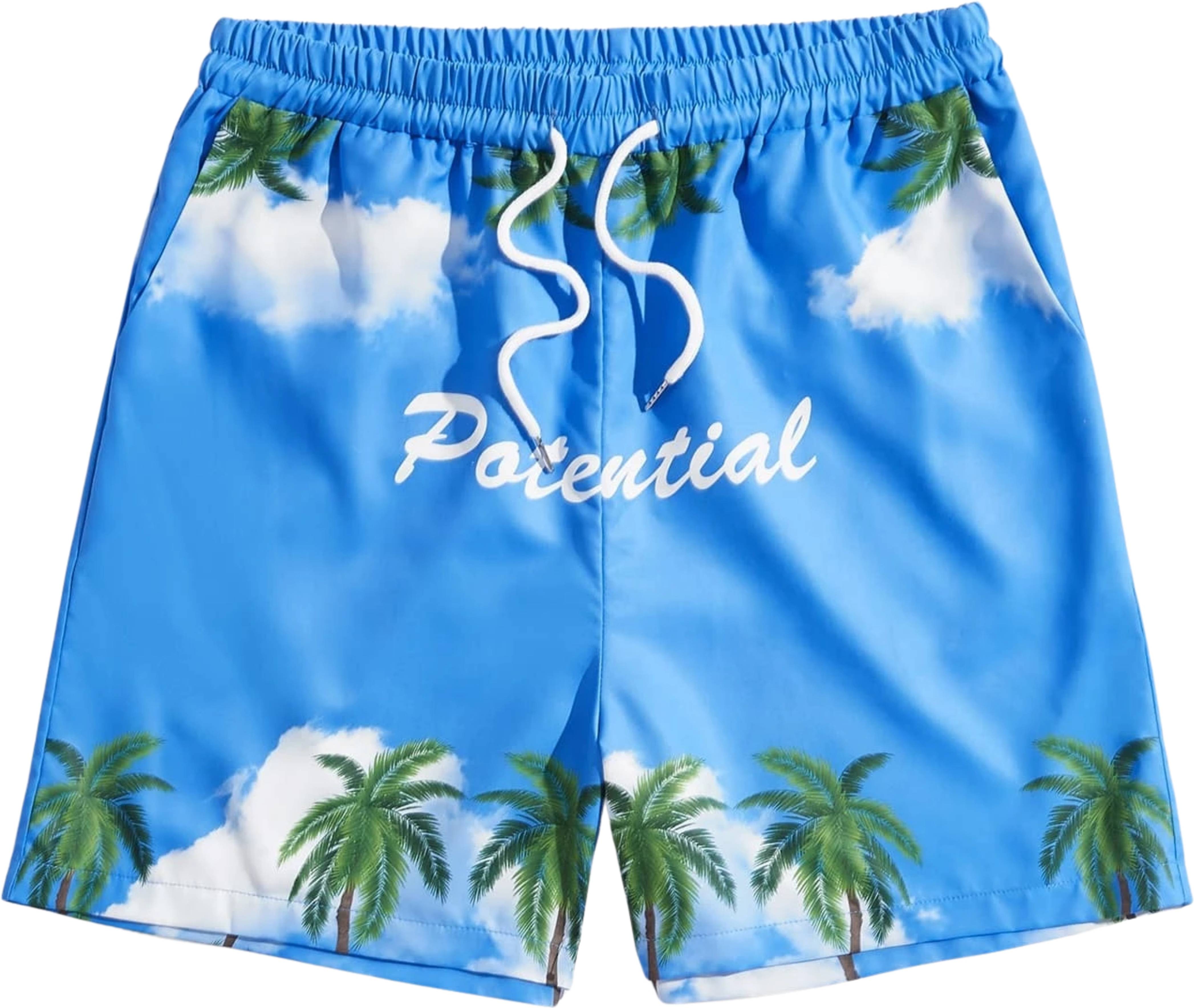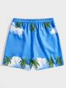 Main Color and Pattern: The shorts are a bright sky blue featuring a scenic, digital print.