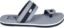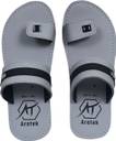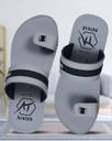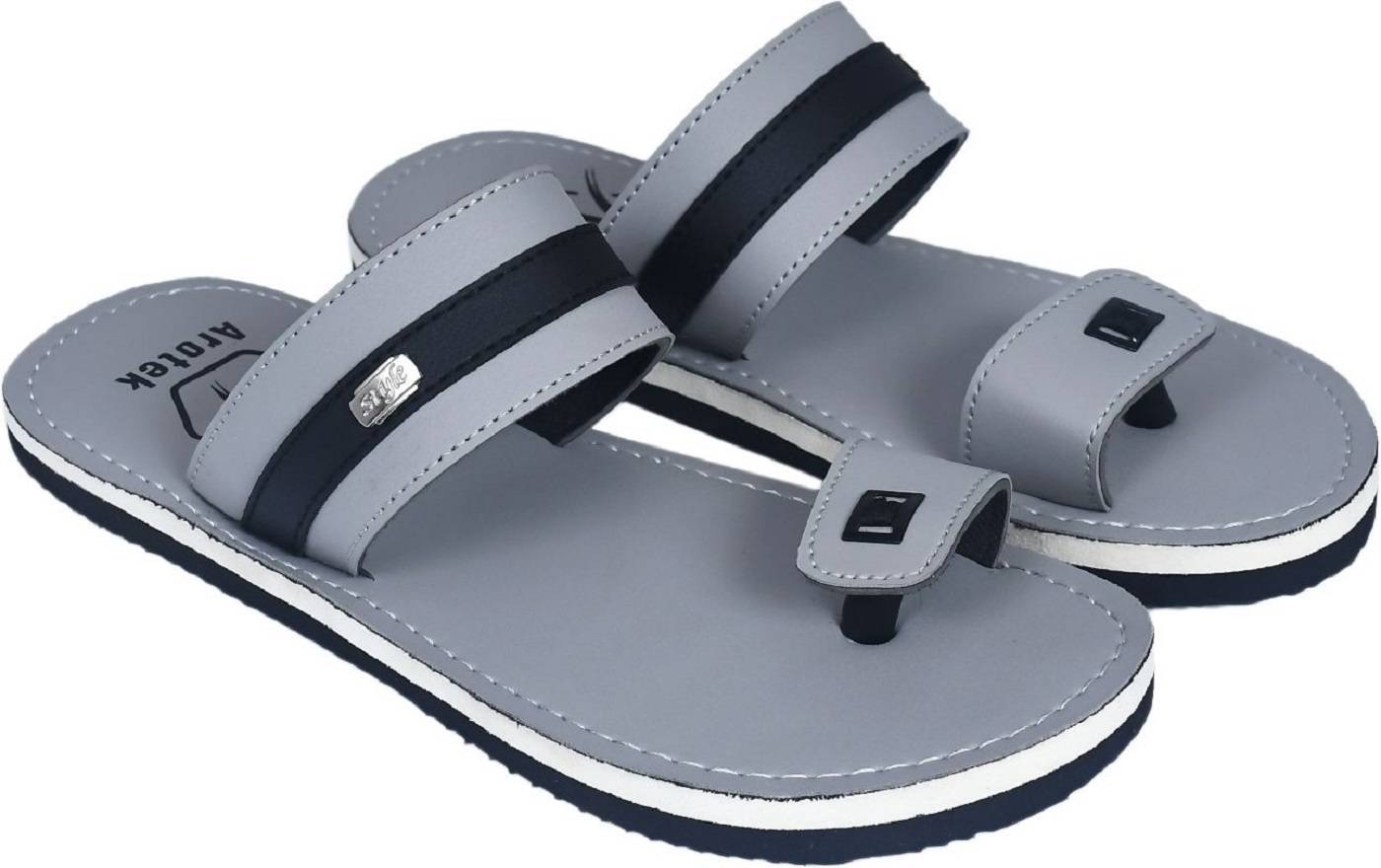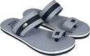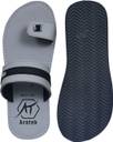 These stylish men's toe-ring sandals feature a contemporary design with a grey and black synthetic upper. The broad strap across the midfoot and the comfortable toe-ring provide a secure fit. The flat sole is designed for everyday comfort, featuring a layered look with grey, white, and black accents, and a textured outsole for enhanced grip. Perfect for casual outings, these sandals can be effortlessly paired with a variety of outfits including kurtas, jeans, or shorts for a relaxed yet fashionable look.