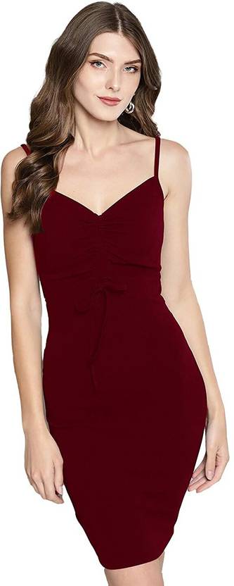 Women Bodycon Maroon Knee Length Dress