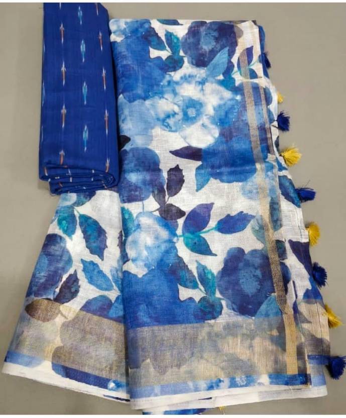 Arpita Fashion Digital Print, Floral Print Bollywood Linen Saree (Multicolor)