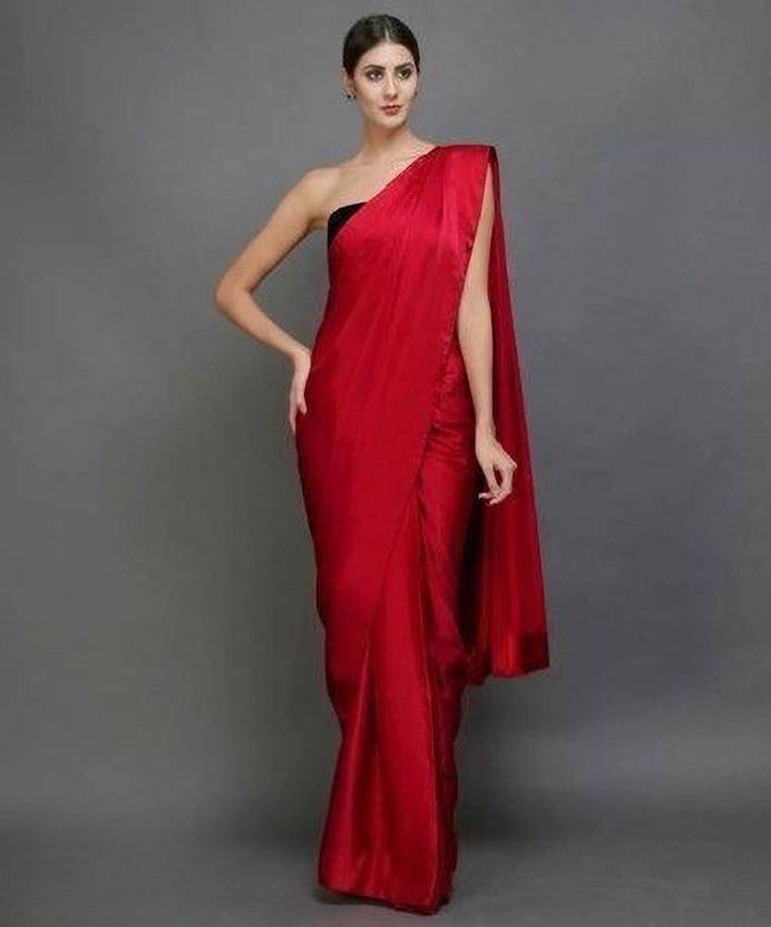 Arpita Fashion Solid/Plain Bollywood Silk Blend Saree (Red)