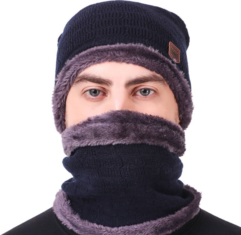 -- The winter beanie scarf made of soft-spun acrylic and fleece lining hat and scarf