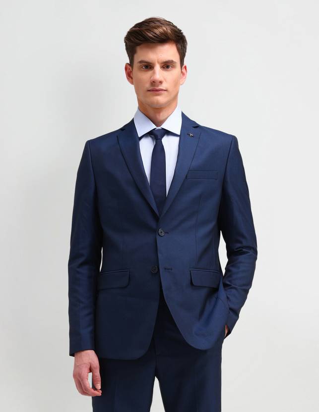 Navigate the world of workwear with this formal navy self design suit. Whether you're heading to the office or elsewhere for a meeting, this arrow suit will be a slick and sophisticated addition to your formal looks. Crafted from a polyester fabric, it features a smart 2-piece and full. Team with brogues and a dress shirt for a work look, or you could mix and match it with your semi-formal pieces for a stylish outfit that'll even work outside the office.