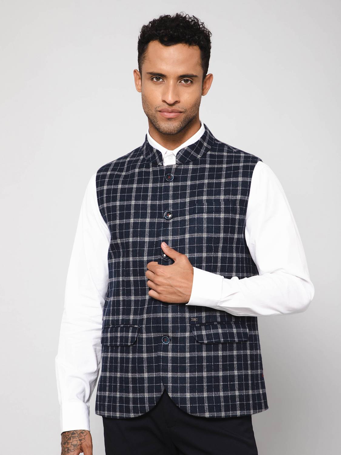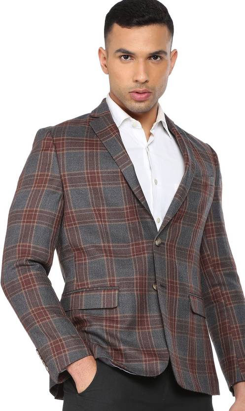 Men Checkered Single Breasted Formal Blazer (Grey)
