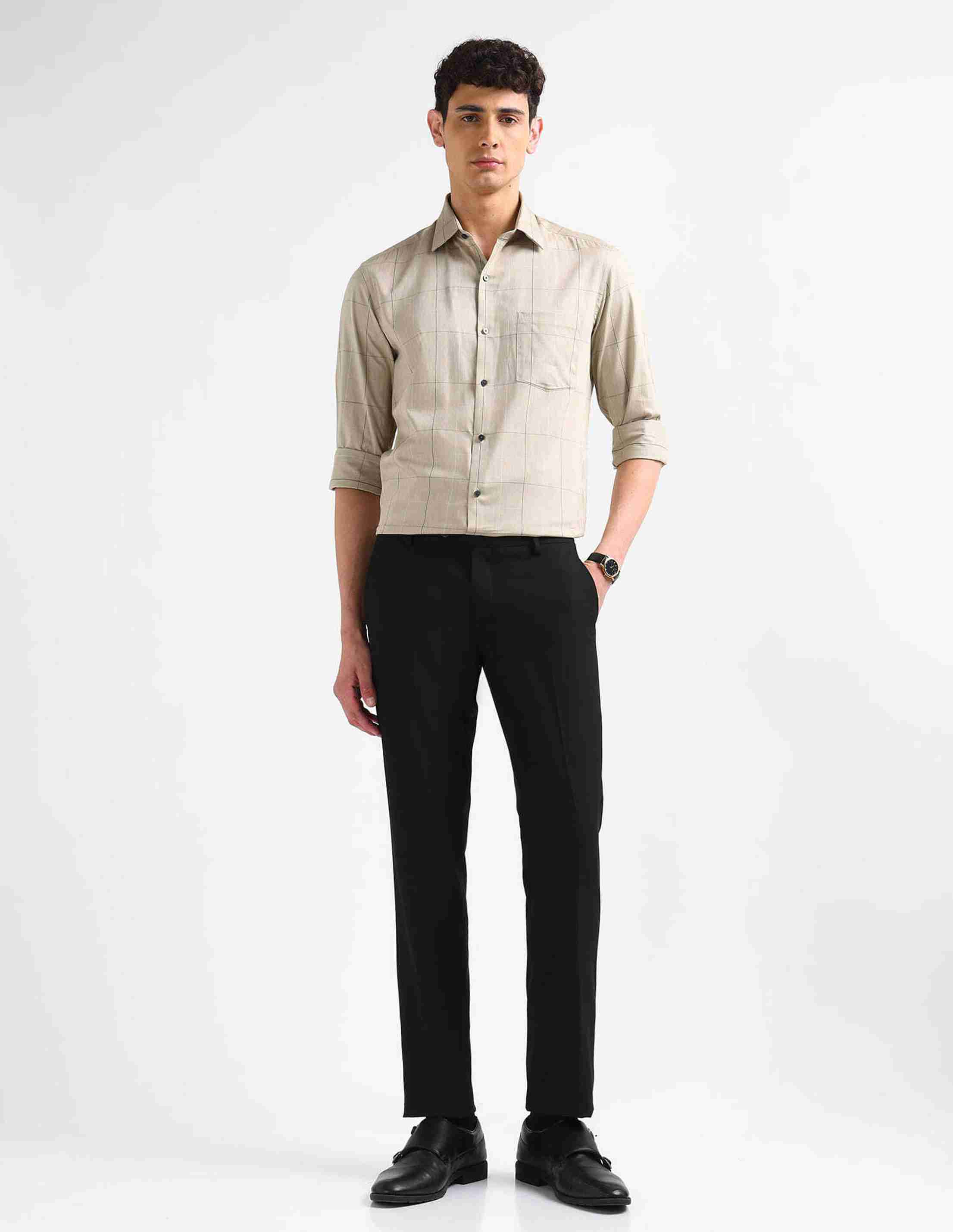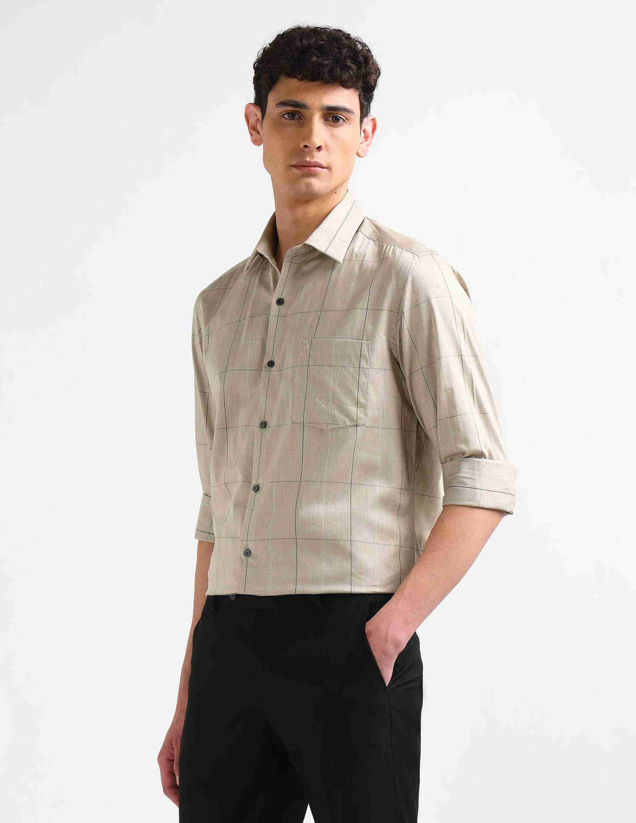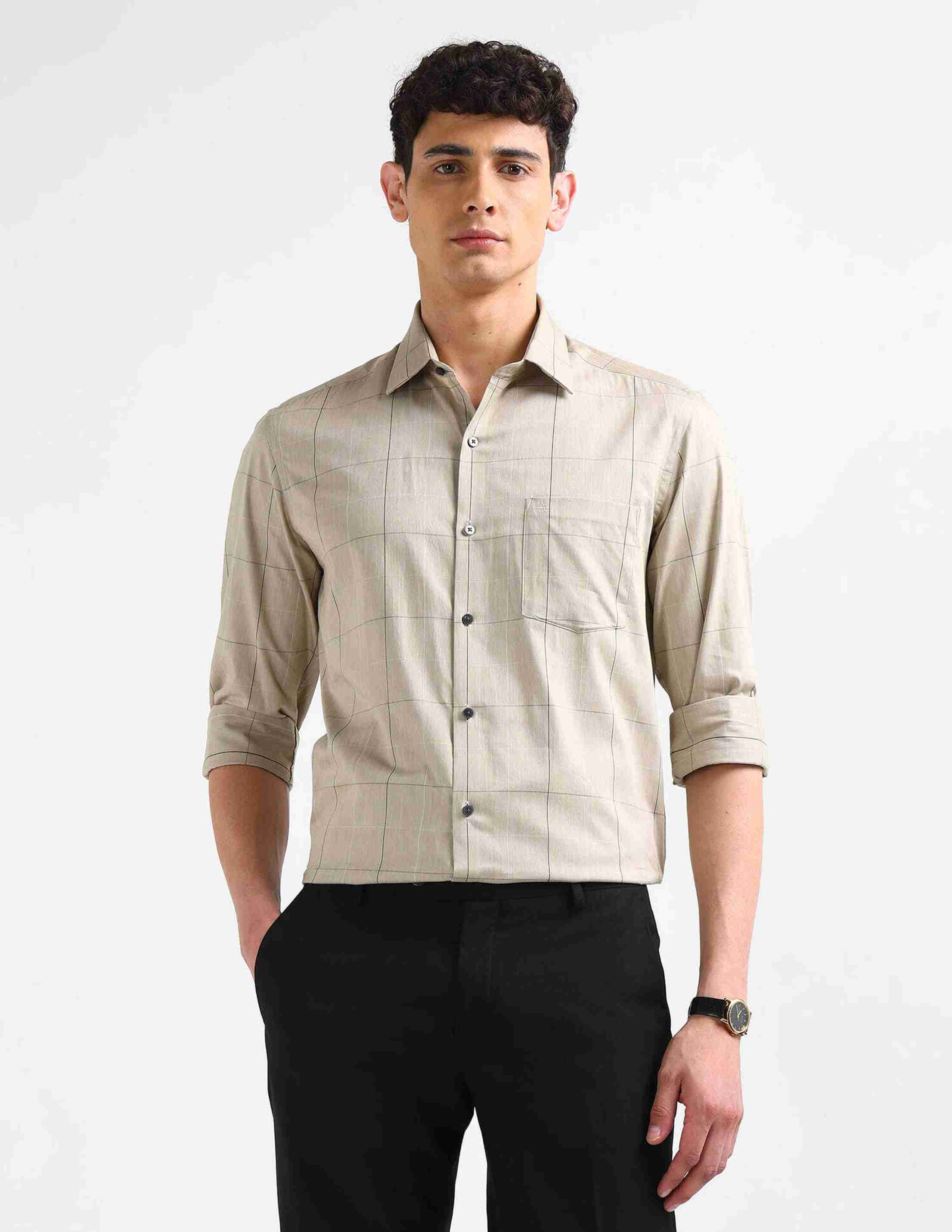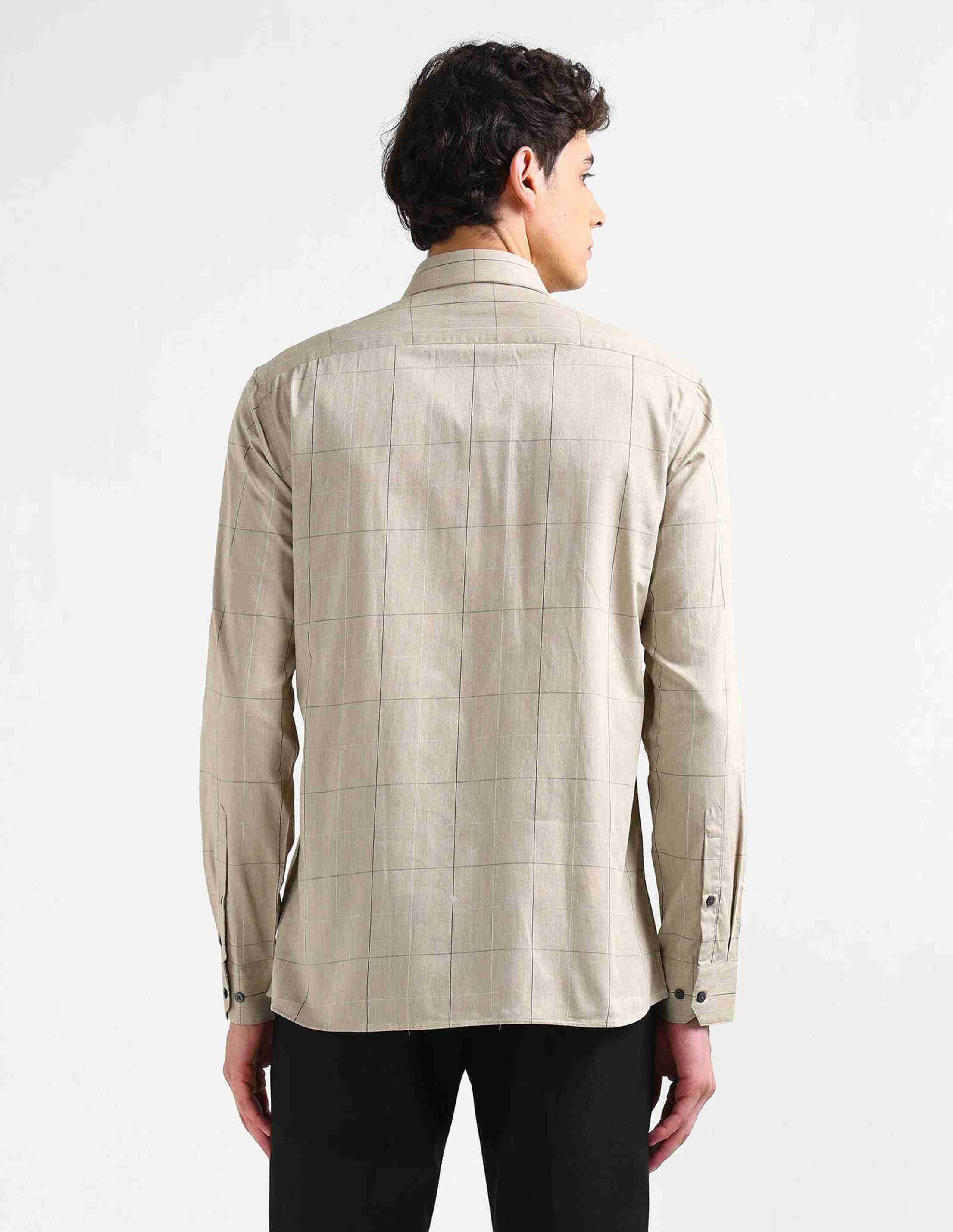 Men Slim Fit Checkered Spread Collar Formal Shirt
