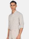 Beige checked opaque formal shirt ,has a spread collar, button placket, 1 pocket, long regular sleeves, curved hem.