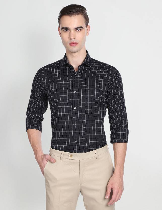 ARROW Men Checkered Formal Black Shirt