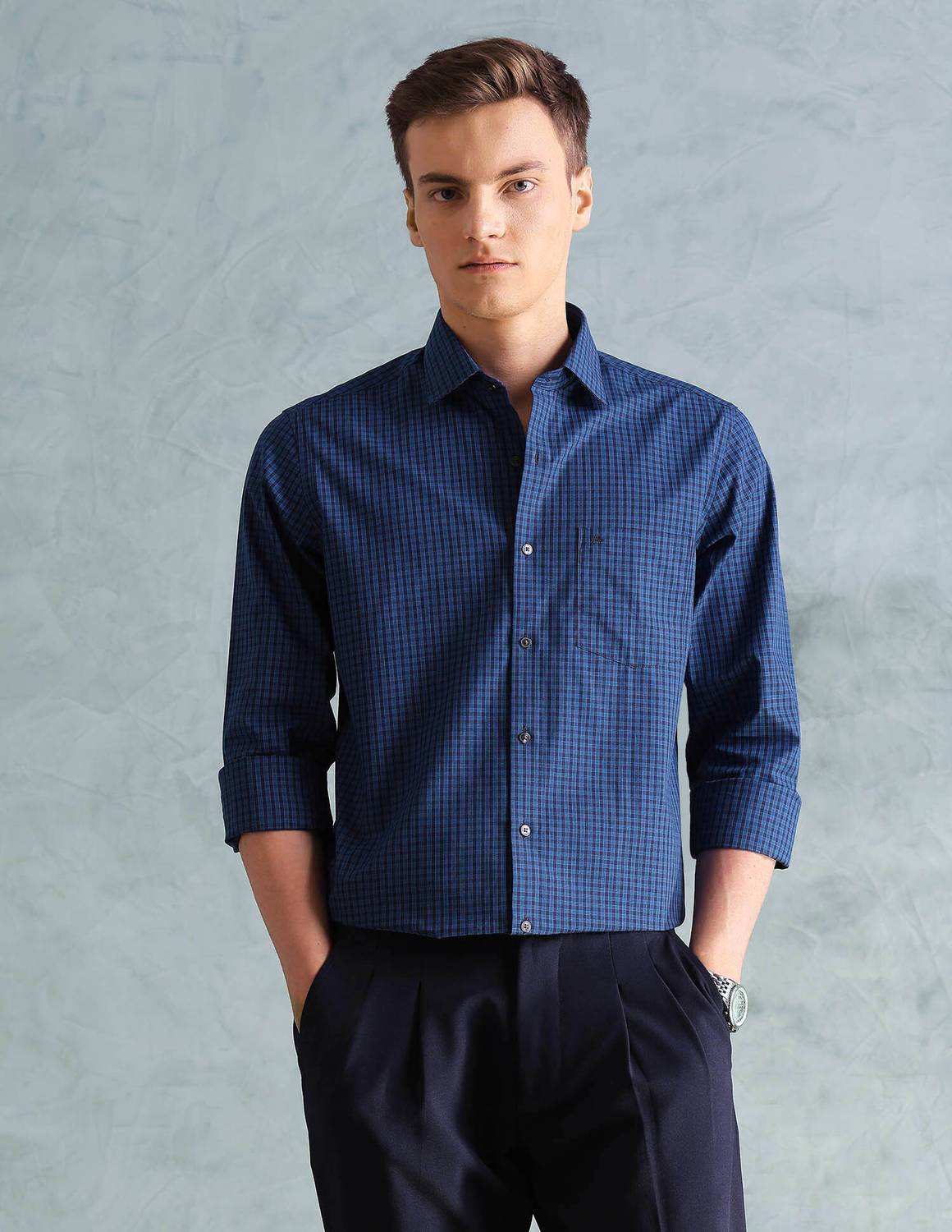 Don a smart slim-fit micro-check shirt this season with solid trousers and oxfords for a remarkable first impression.